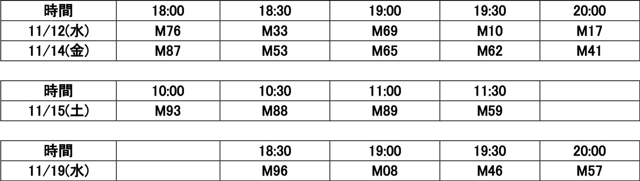 - ご都合が悪い際は10/31(金)までにご相談ください。